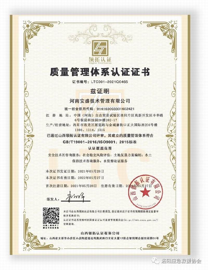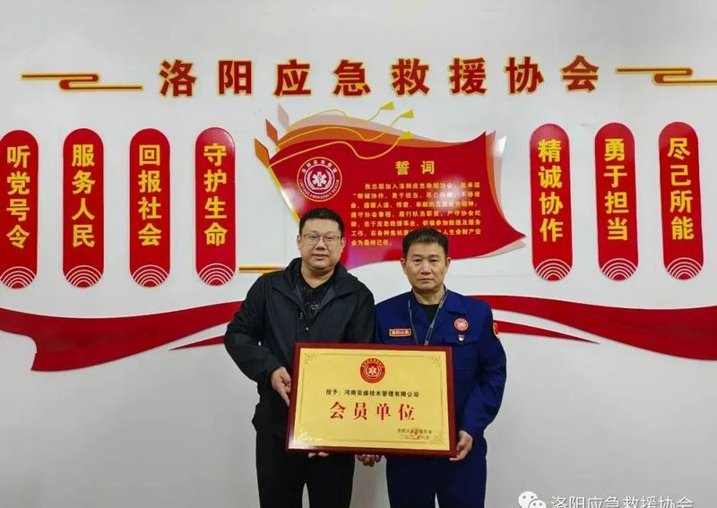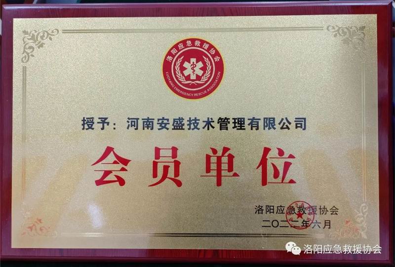 河南安盛技術(shù)管理有限公司被洛陽市應(yīng)急救援協(xié)會授予會員單位牌匾