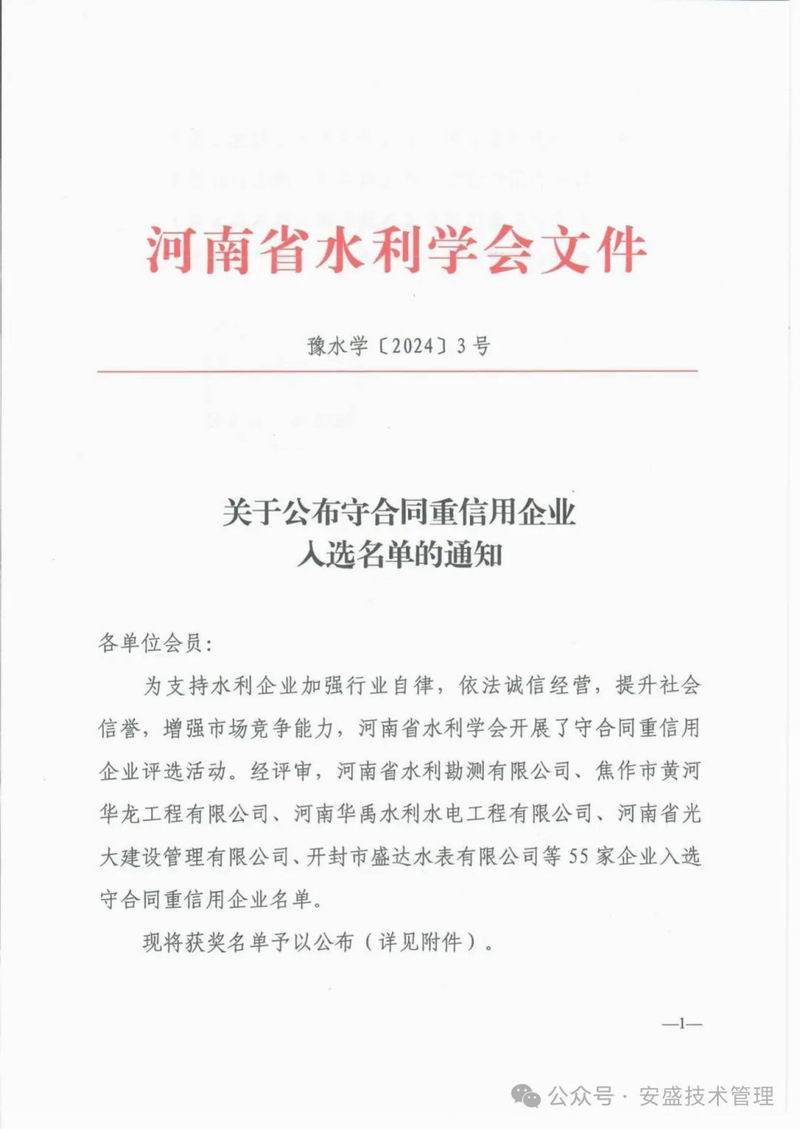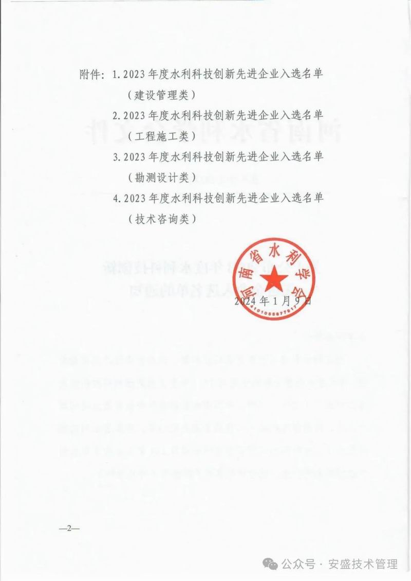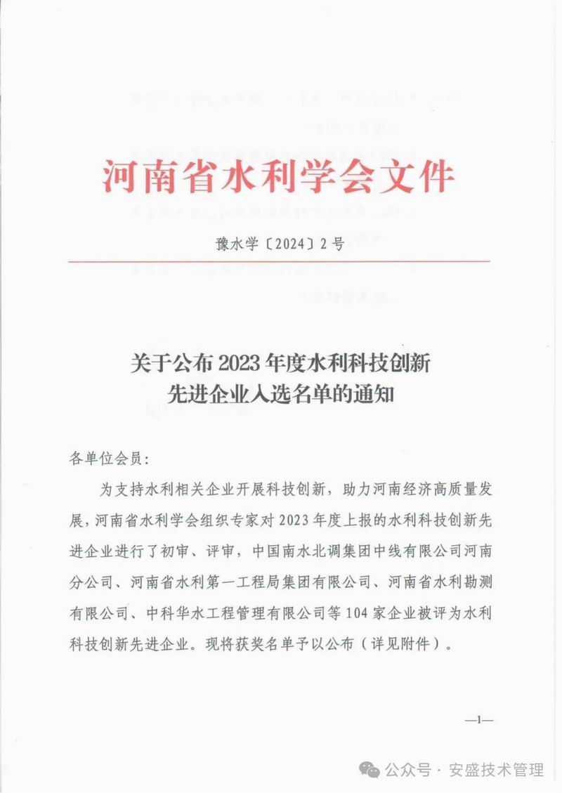喜報(bào)|熱烈祝賀我司入選2023年度水利科技創(chuàng)新先進(jìn)企業(yè)、守合同重信用企業(yè)