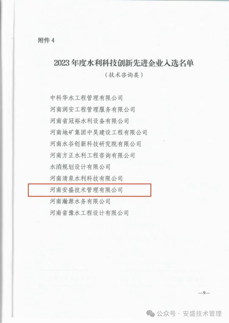 水利科技創(chuàng)新先進(jìn)企業(yè)